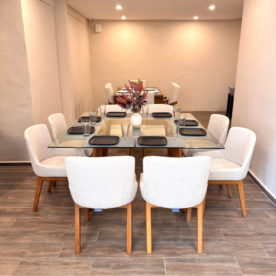 Modelo: Mesa Xpuha con cubierta de cristal y 8 sillas Diana